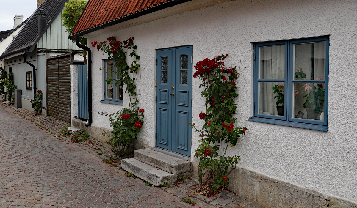 In de ruïnes van de Sankt Clemens kyrko stemt een muzikant zijn piano voor een concert, later op de avond. We ontdekken de statige huizen van rijke kooplieden en de mooie lage houten huizen in de kleine geplaveide straatjes. Huizen en cafés zijn versierd met rozen, die in overvloed op Gotland gekweekt worden. Op het centrale marktplein trachten de venters hun waren aan de man (of vrouw) te brengen, terwijl de toeristen liever smullen van de saffraanpannenkoeken met rood fruit, dé specialiteit van Visby.